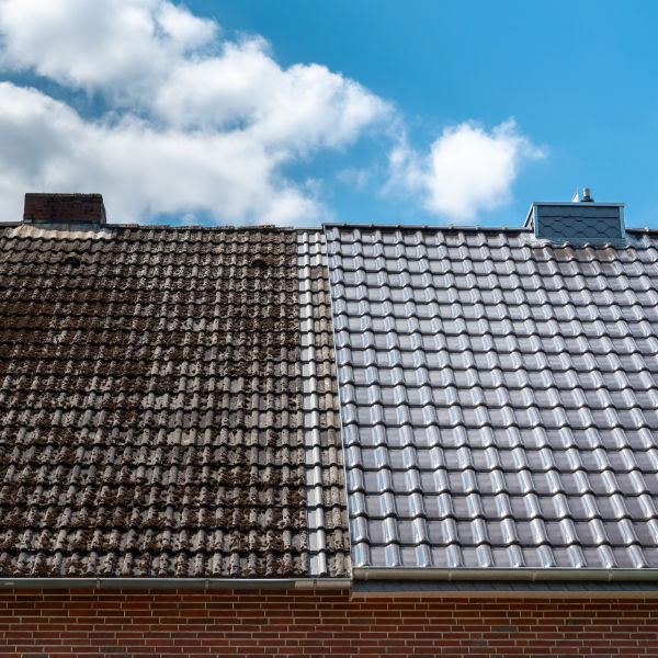 Vor allem schattige Dachflächen neigen dazu, schnell Moos zu entwickeln, was verhindert, dass das Dach ausreichend trocknet. Bei Frost führt das sich ausdehnende Eis in den Poren zu feinen Rissen, die im Laufe der Zeit größer und tiefer werden. Aus diesem Grund ist es wichtig, sowohl Betondachsteine als auch Tonziegel regelmäßig zu säubern.